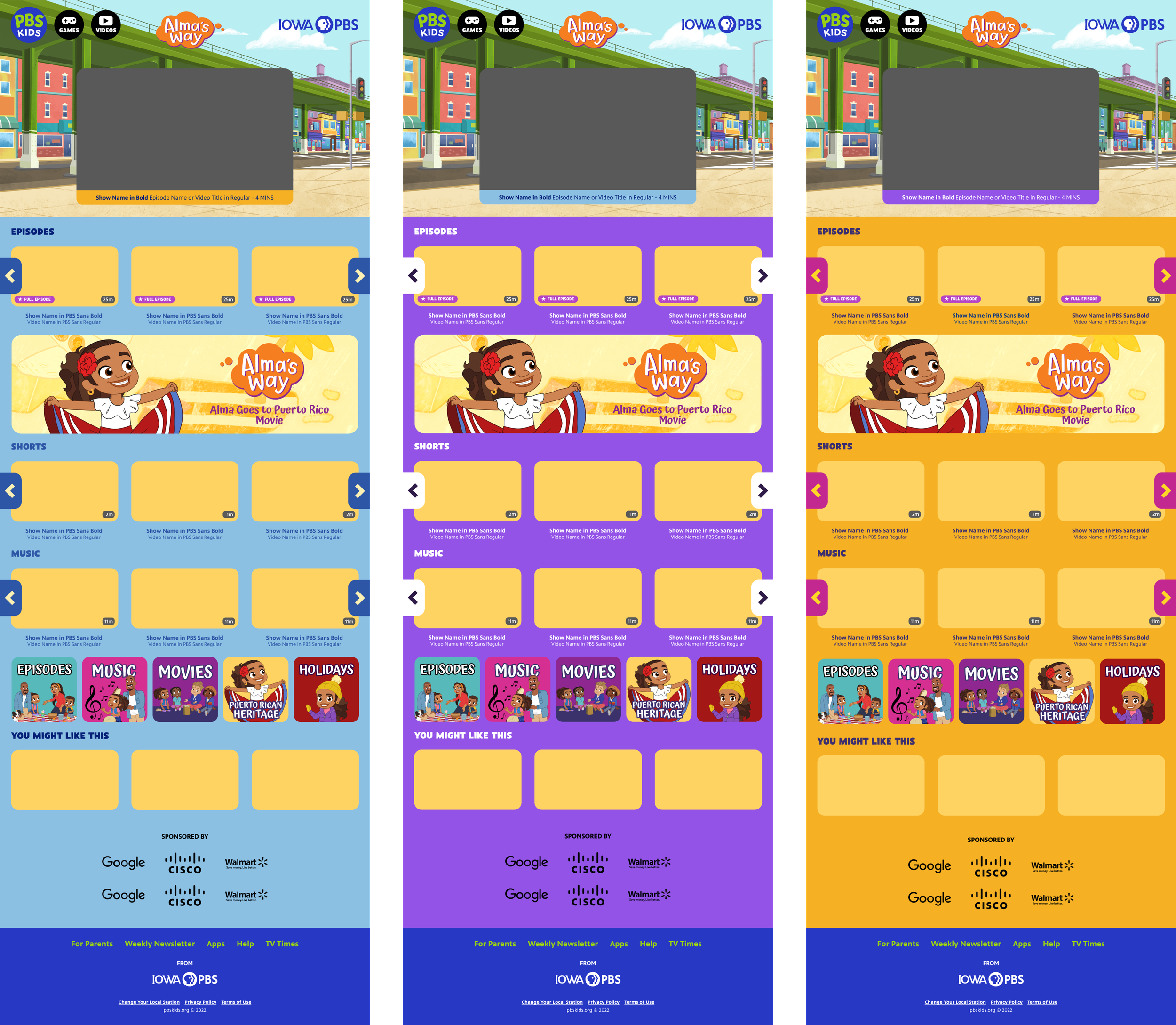 In the context of webpage design, I was assigned the responsibility of developing three distinct color palettes for each show under my purview. It was imperative to ensure that each palette adhered to WCAG 2 compliance standards while simultaneously capturing the unique look and feel of the respective shows, all within the constraints of the established brand guidelines.